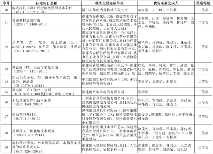 希望获奖的单位和个人进一步强化标准和标准化意识,不断提高标准化工作创新能力,努力研制质量技术水平更高的标准。各级各有关部门要继续深入推进标准化战略实施,有效激发企业标准化热情,充分发挥标准在抢占市场制高点、提升产业发展水平方面的重要技术支撑和引领作用,助力供给侧结构性改革,为“再上新台阶、建设新福建”作出新的更大贡献。