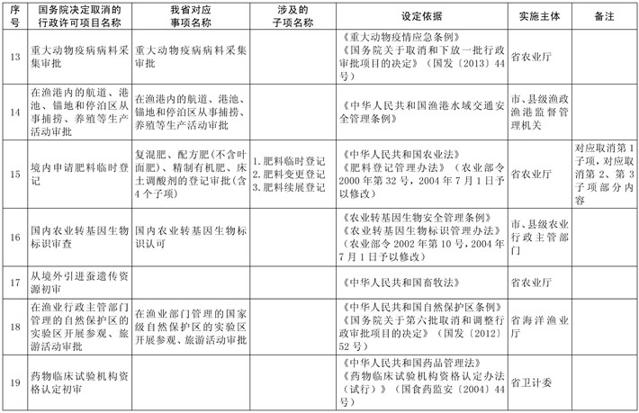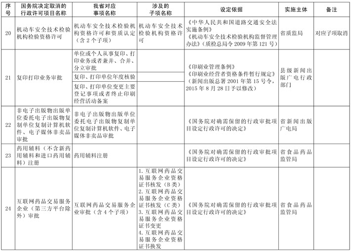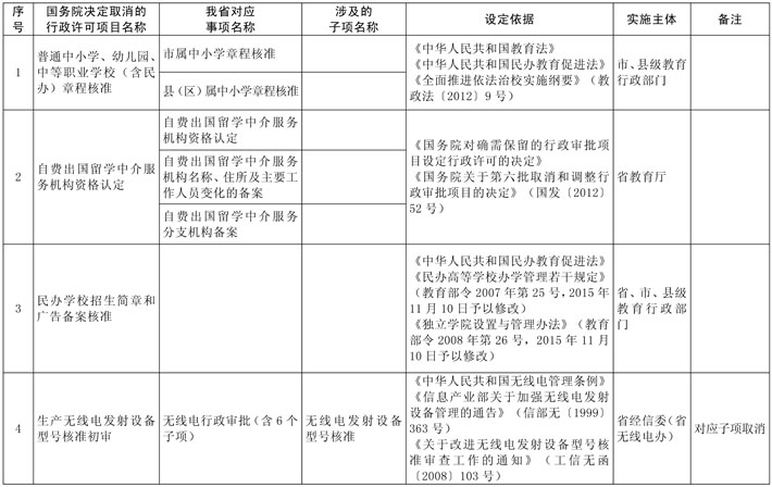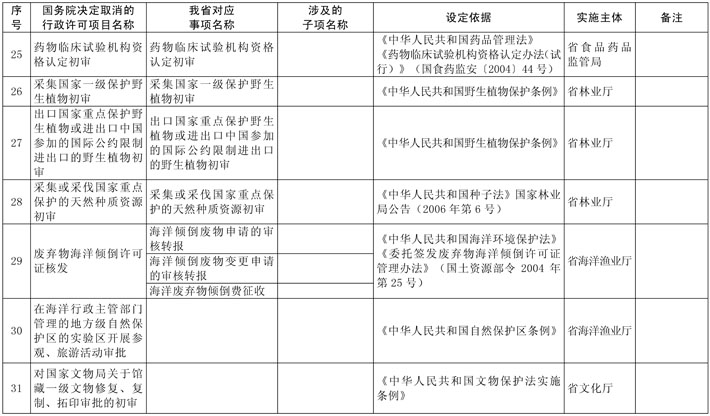 根据国务院《关于第三批取消中央指定地方实施行政许可事项的决定》(国发〔2017〕7号)精神,经研究,决定取消涉及我省的31项中央指定地方实施行政许可事项。