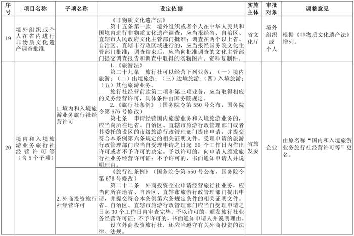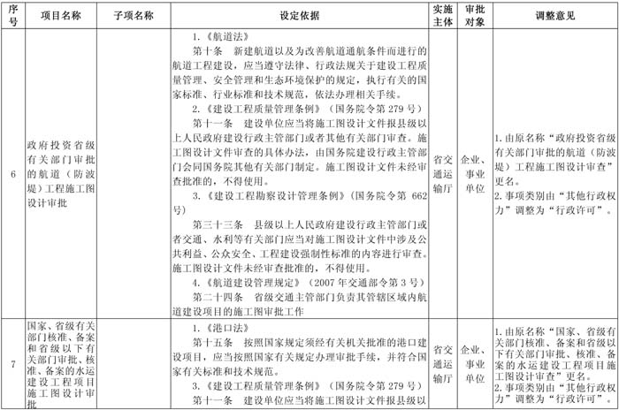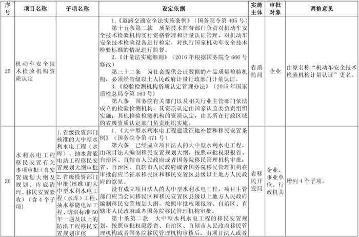 经研究,省政府决定再取消、下放和调整一批省级行政许可事项,其中取消2项、下放5项(含委托)、调整28项。