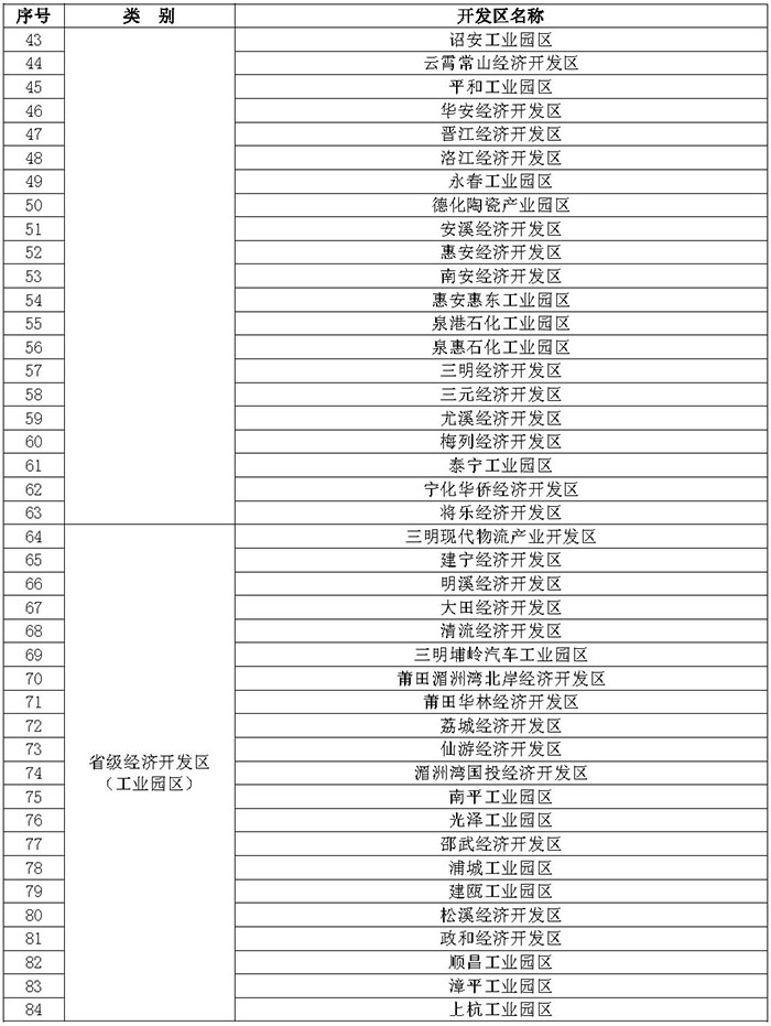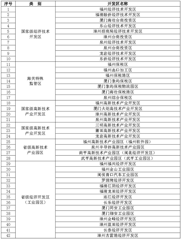 附件:福建省省级(以上)开发区名录 福建省人民政府