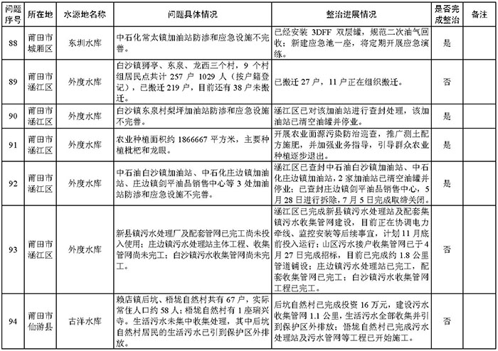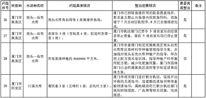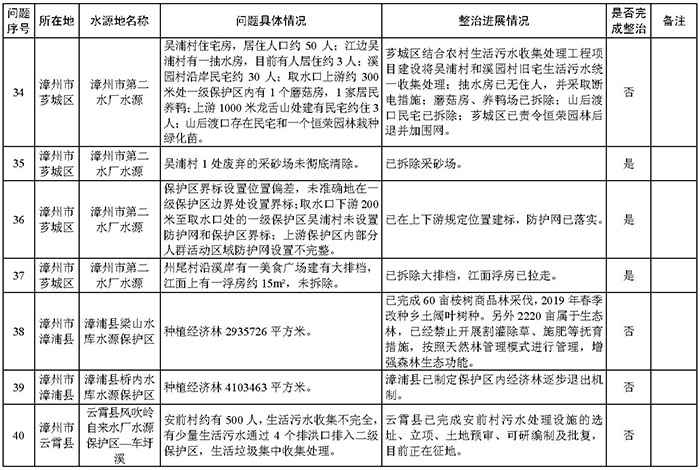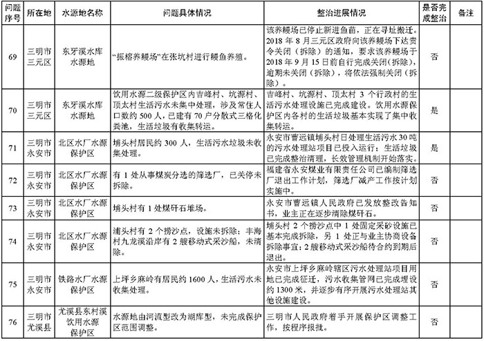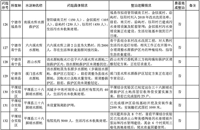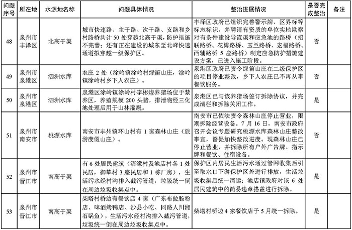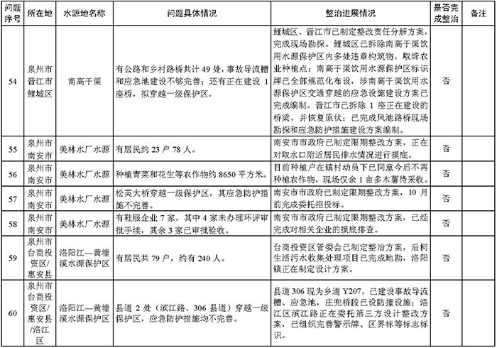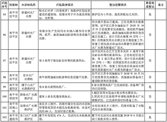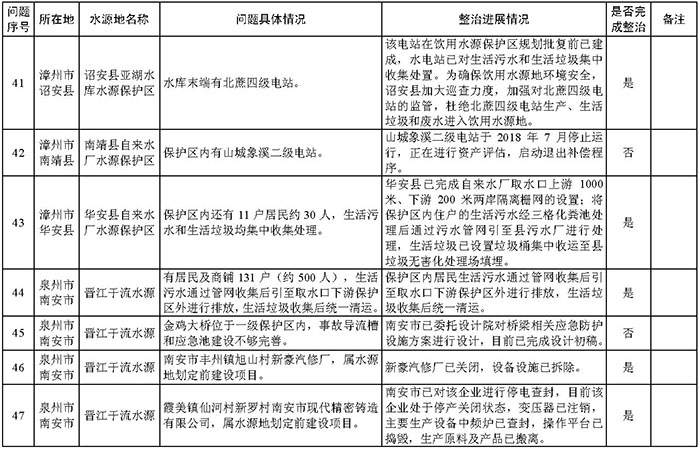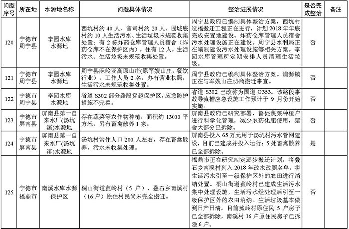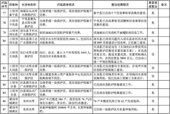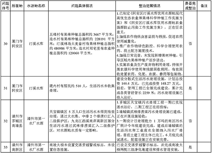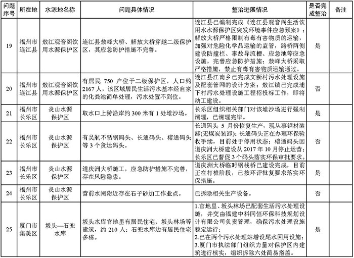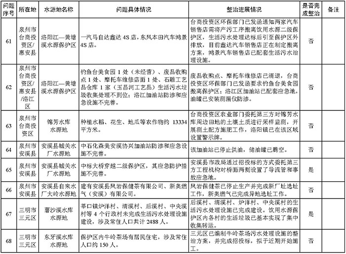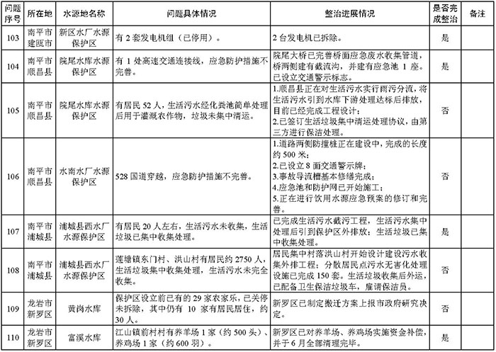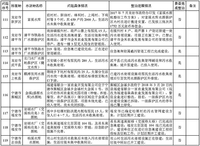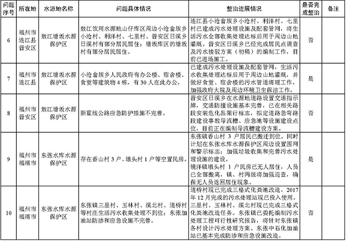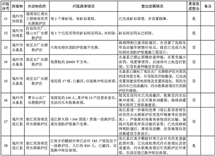 附件:福建省饮用水水源地环境问题清理整治进展情况统计表