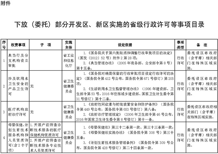 附件:下放(委托)部分开发区、新区实施的省级行政许可等事项目录