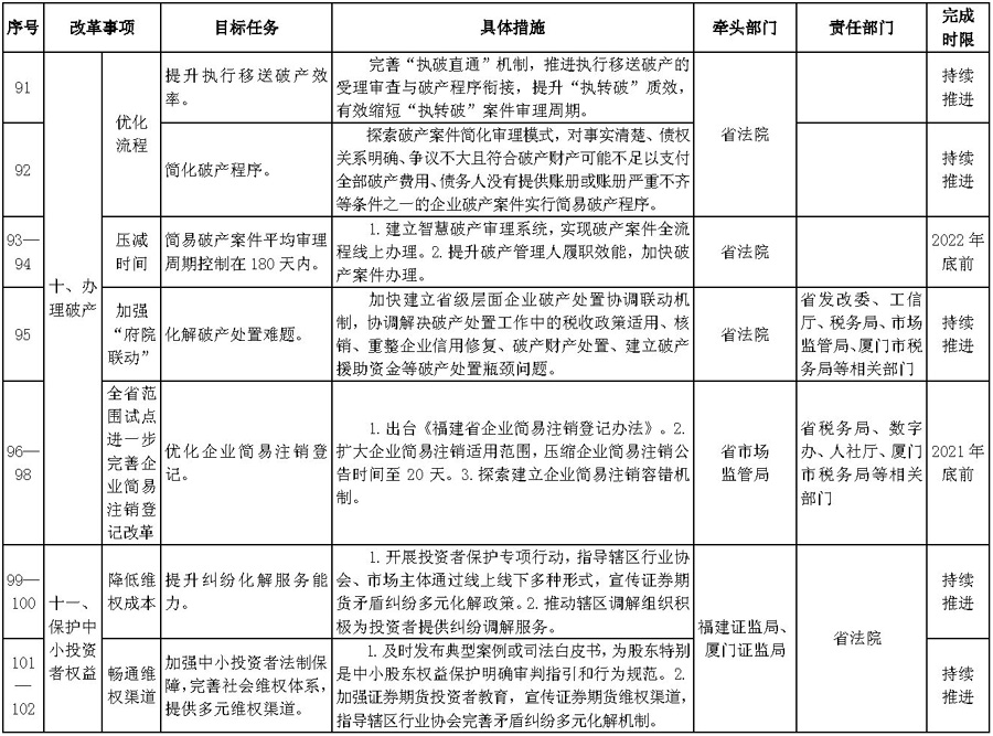 (四)加强法制保障。全面落实《优化营商环境条例》,修改废止不符合《优化营商环境条例》的规章和规范性文件,加快推动制定《福建省优化营商环境条例》。