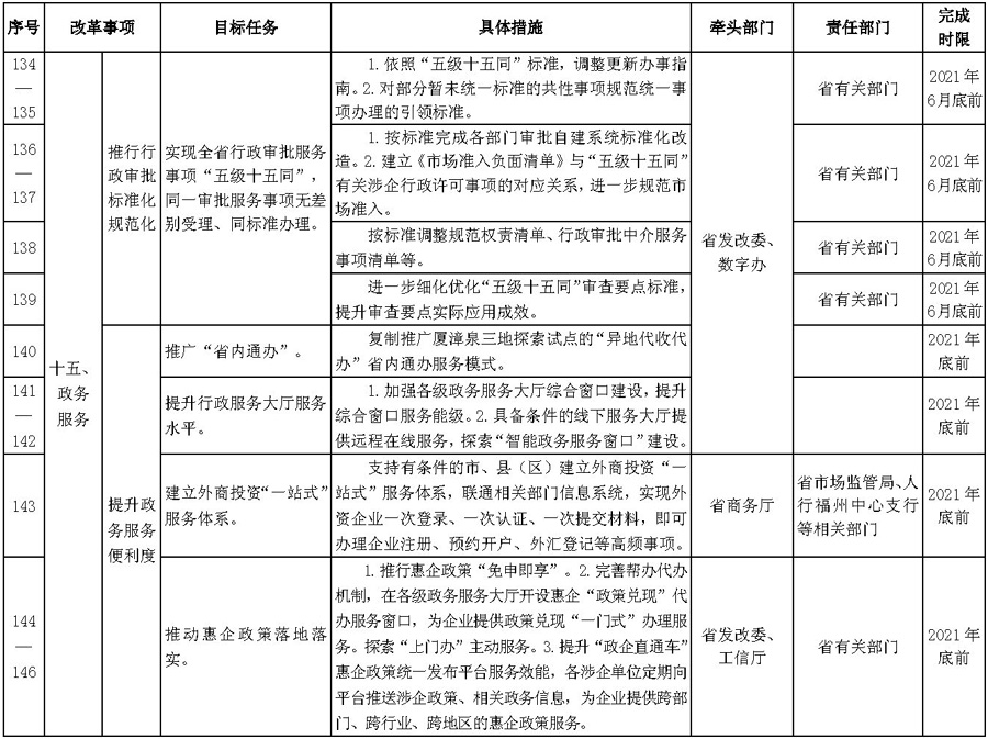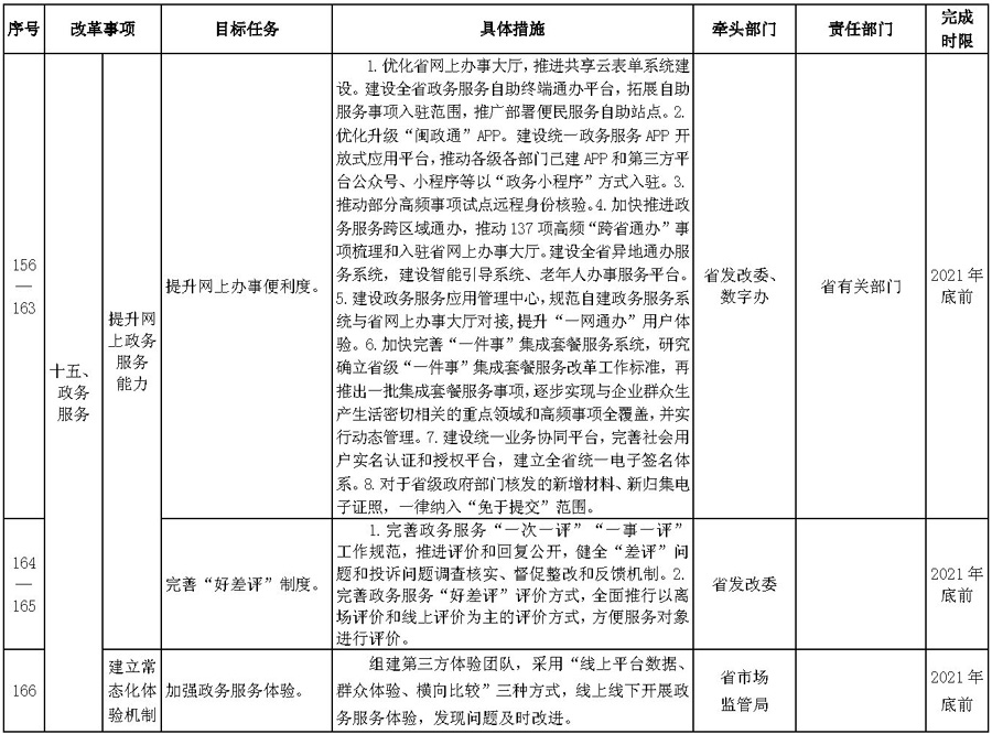 1.推进政务服务标准化便利化。实现全省行政审批服务事项“五级十五同”。完善“一件事”集成套餐服务系统,确立省级“一件事”集成套餐服务改革工作标准。推动137项高频“跨省通办”事项梳理入驻省网上办事大厅,推广“异地代收代办”省内通办模式。